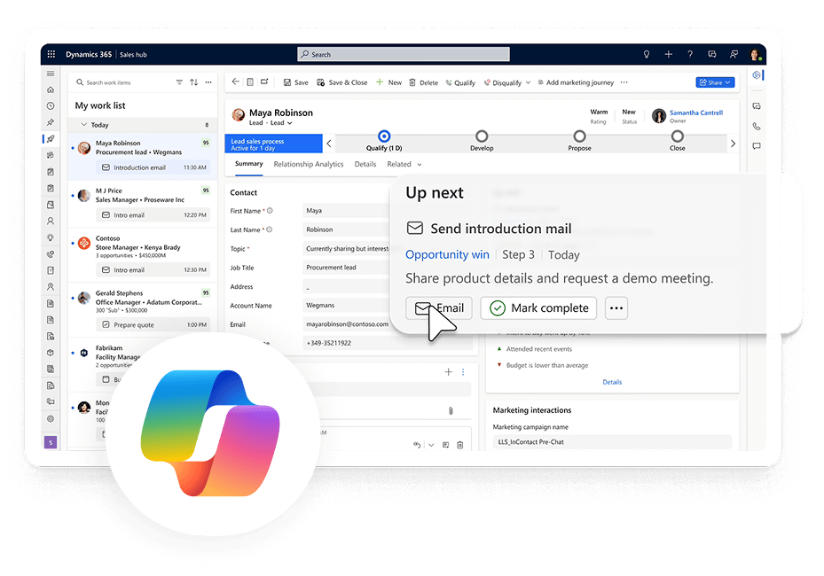 Copilot is also available as an add-in for Microsoft Teams and Outlook, allowing sellers to conveniently view, update, and enrich customer data directly within the apps they use every day. With AI-driven features like email content generation and record summaries, Copilot significantly streamlines the daily workflow, helping sales teams stay focused, productive, and responsive.